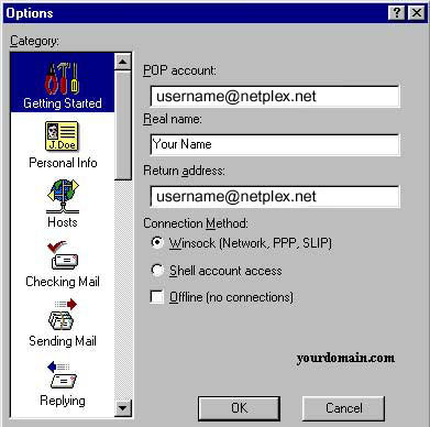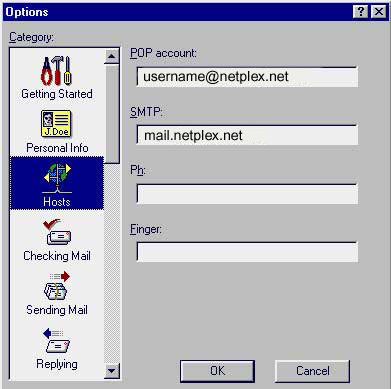 6) Under SMTP enter mail.netplex.net (leave other fields