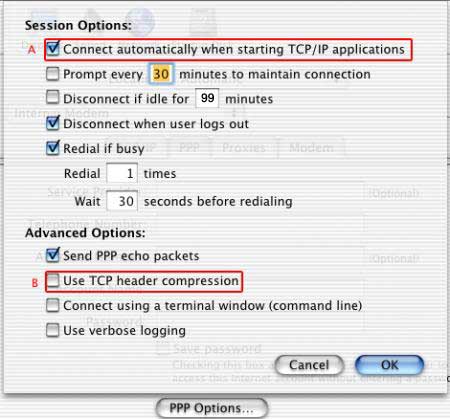 a PPP connection remove the checkmark next to "Use TCP header